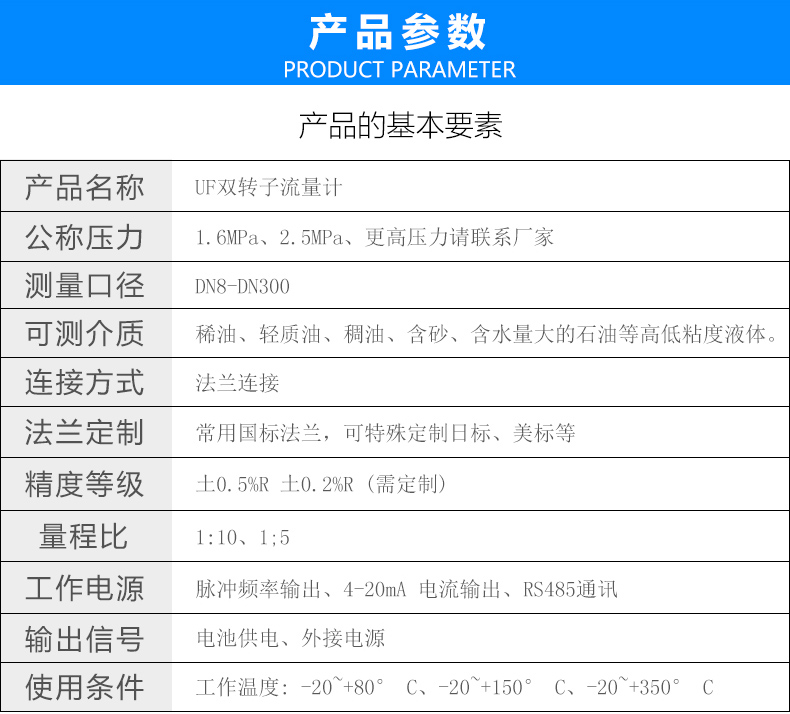 重油流量計(jì)參數(shù)